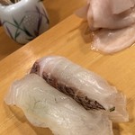 丁子家 - 鯛の昆布締め右、平目の昆布締め左